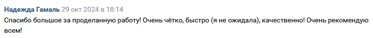 Вы также можете оставить отзыв о моей работе через социальные сети, указанные в разделе «Контакты».